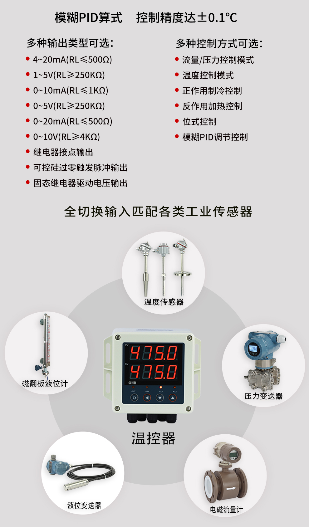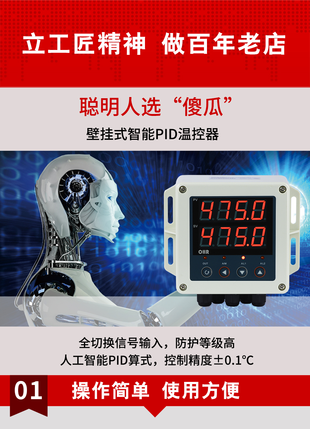 虹潤公司是專業(yè)生產(chǎn)溫控器的國家專精特新“小巨人”企業(yè)。生產(chǎn)的壁掛式PID溫控器,具有全切換信號輸入,真正人工智能算式,控制精度達士0.1°C,防護等級高,RS485通訊輸出DN等特點。產(chǎn)品獲得模糊PID控制儀及控制方法、人工智能調(diào)節(jié)器、智能化控制器、移相觸發(fā)控制器、閥門自動手動無擾動操作控制方法及裝置等5項國家發(fā)明專利,主持起草主持起草工業(yè)過程控制系統(tǒng)用模擬輸入兩位或多位輸出儀表、物聯(lián)網(wǎng)智能溫度儀表通用技術(shù)條件、工業(yè)過程測量和控制系統(tǒng)用智能調(diào)節(jié)器等3項國家標準,以及通信系統(tǒng)多通道數(shù)據(jù)采集控制終端規(guī)范軍用標準。參與國際5G標準制定,取得傻瓜式PID調(diào)節(jié)儀等3項相關(guān)軟件著作權(quán)。產(chǎn)品廣泛應(yīng)用于電力、石化,冶金、制藥、食品等幾乎所有工業(yè)現(xiàn)場,實現(xiàn)精準控溫,保障生產(chǎn)安全與質(zhì)量。