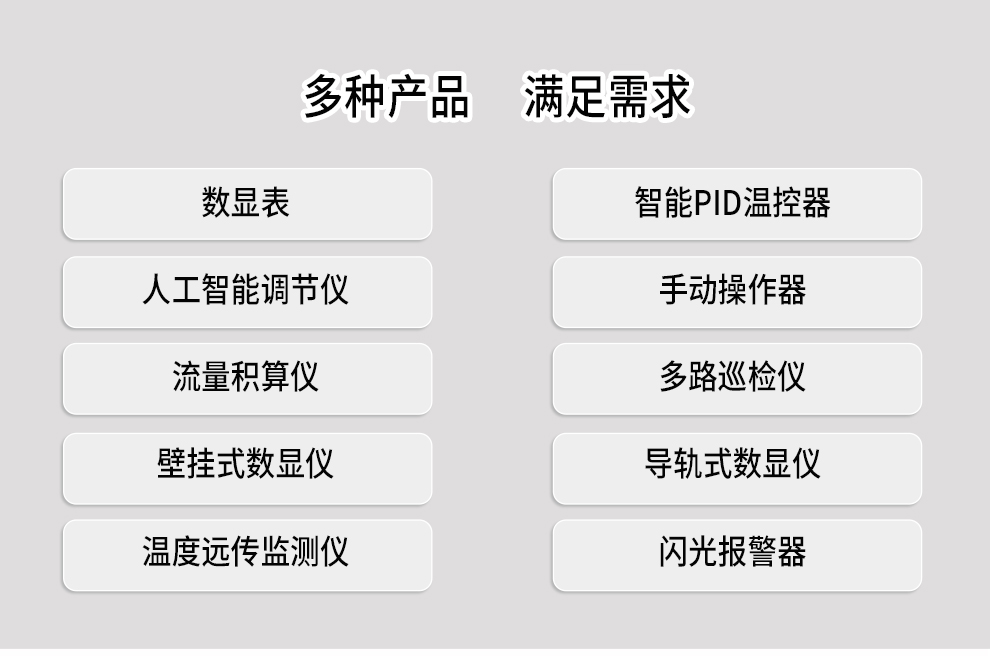 數(shù)顯儀表與溫控器 顯示控制儀 模糊PID溫控器 人工智能調(diào)節(jié)儀 手動操作器 流量積算儀 數(shù)字顯示容積儀 多路巡檢儀 導(dǎo)軌式數(shù)顯表 導(dǎo)軌式溫控器 導(dǎo)軌式數(shù)顯溫度變送器 導(dǎo)軌式流量積算儀 導(dǎo)軌多路巡檢儀 壁掛式數(shù)顯表 壁掛式溫控器 閃光報警器 移相觸發(fā)器 導(dǎo)軌流量積算儀 固態(tài)繼電器