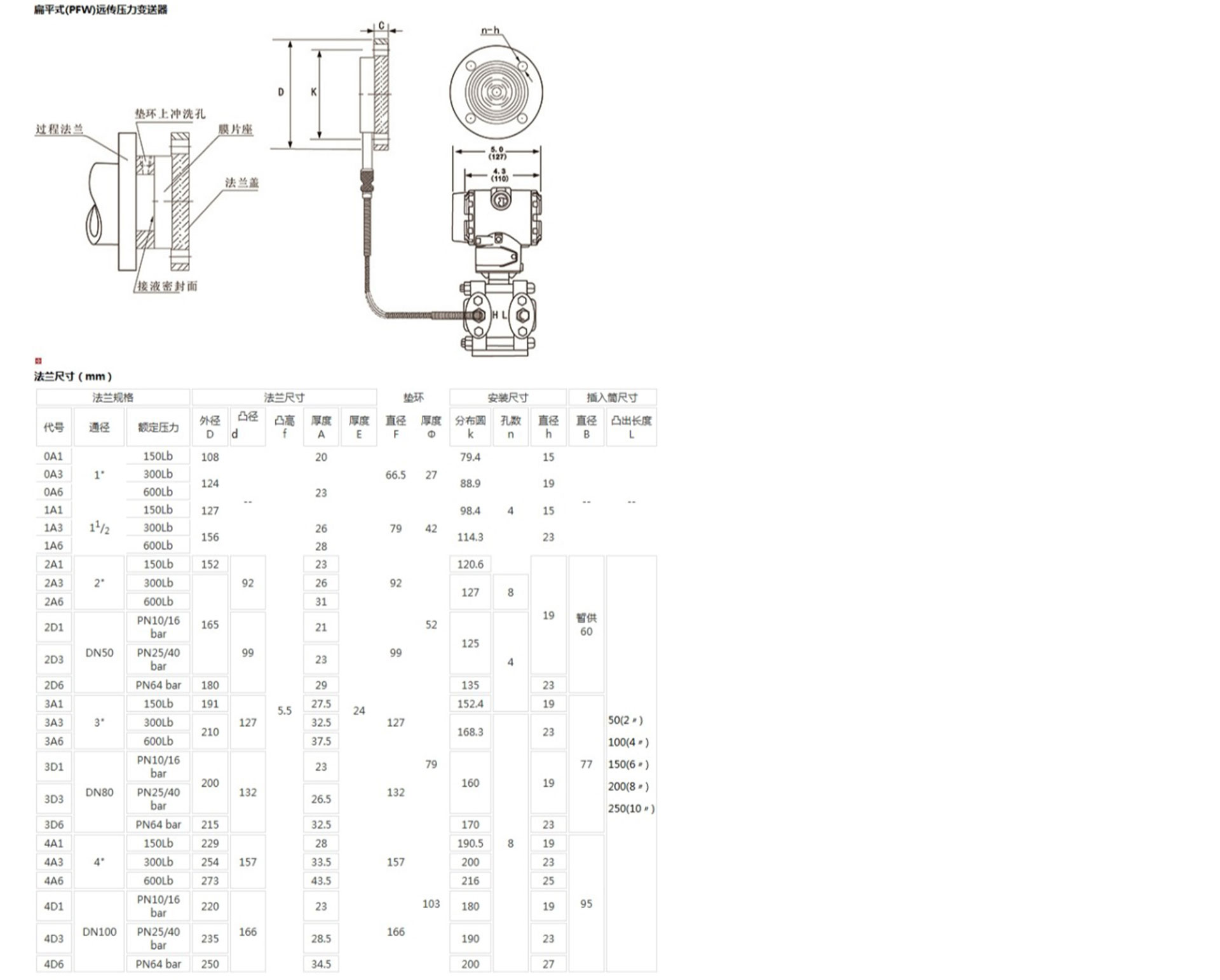 HR-3051GP遠傳壓力變送器是一種通過安裝在管道或容器上的遠傳裝置來感受被測壓力,該壓力經(jīng)毛細管內(nèi)的灌充硅油(或其它的液體)傳遞至變送器的主體,然后由變送器主體內(nèi)的δ室和放大線路板,將壓力或差壓轉換4~20mA.DC信號輸出。
